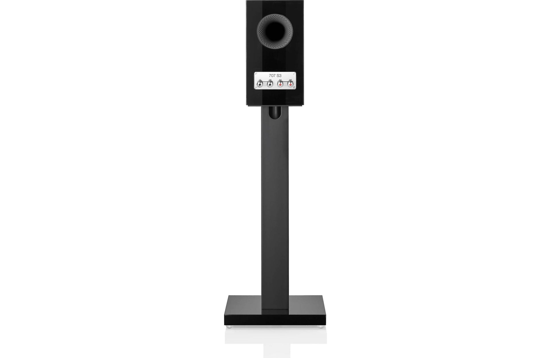 Hook up the gloss black 707 S3 2-Way Bookshelf Speakers from Bowers & Wilkins to your amp or receiver and enjoy room-filling sound from a single 1" decoupled carbon dome tweeter and 5" Continuum cone woofer/midrange driver. Compared to last generation's aluminum double dome, the tweeter's carbon dome delivers increased accuracy in higher frequencies, and boosts the breakup threshold to 47 kHz. On the woofer/midrange, the Continuum cone ensures distinct, clear vocals and instrumentation in your favorite music. Both are part of a curved cabinet baffle and placed in individual drive unit pods for a clean and immersive aural experience. (Sold as Pair)