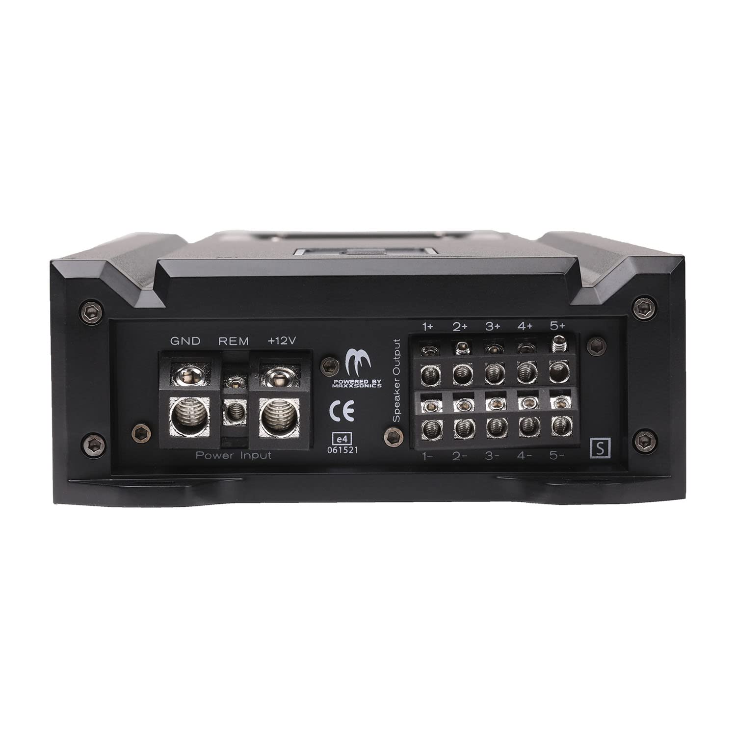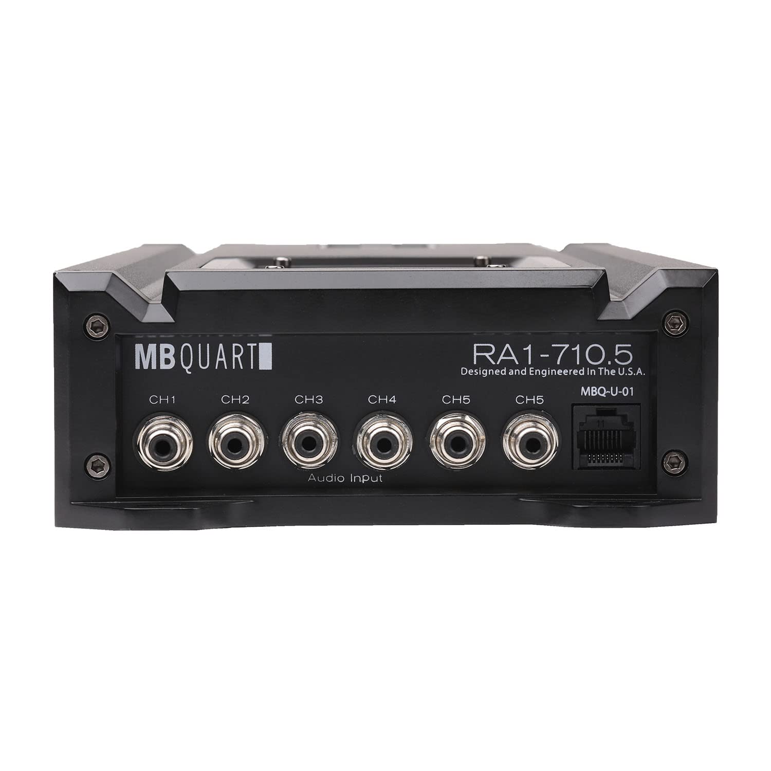 MB Quart Reference series five channel car audio amplifier featuring innovative sound quality and power technology to run four full range channel and a subwoofer channel. The RA1-710.5 is a 700 watt 1 ohm stable (channel 5 only) car audio amplifier. Reference amplifiers feature DC Sensing to allow any amplifier to be easy integrated into an OEM system by simply adapting a RCA cable from the source unit. Bass remote is included.
