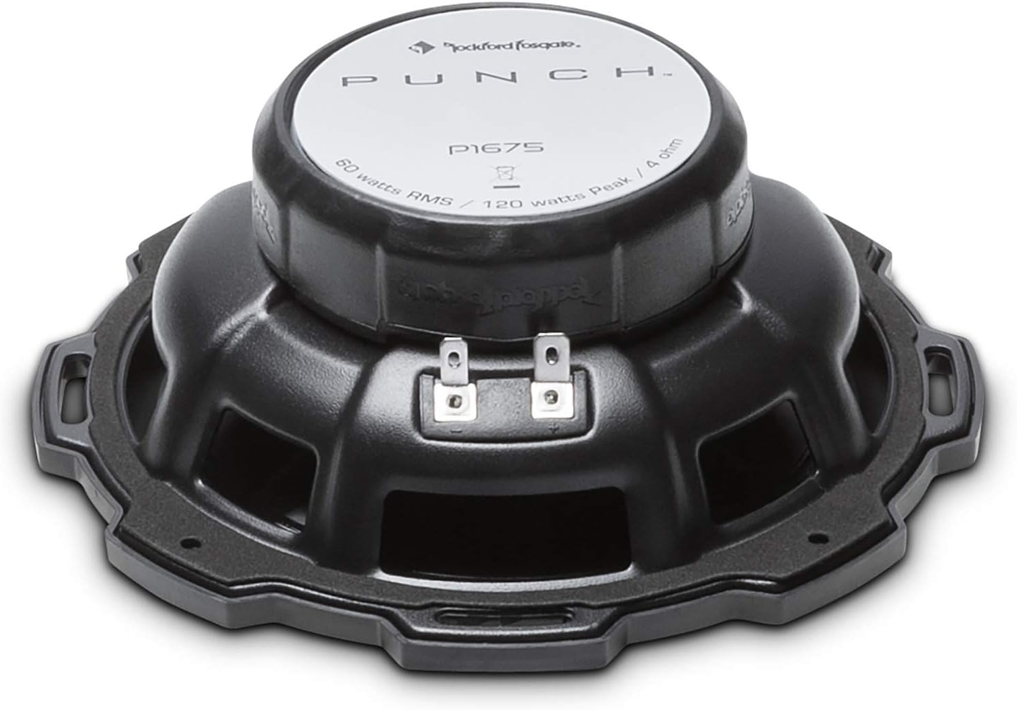 The P1675 is a pair of 6.75" 3-way full-range speakers rated at 60 watts RMS and designed for audio fanatics needing a quality factory replacement. The P1675 offers a Flex Fit basket to ensure compatibility with odd shaped factory speaker locations and an ICC (Integrated Concealed Crossover), eliminating the need to mount any black boxes. The PEI dome tweeter provides accurate frequency reproduction as well as high volume output. The P1675 is exactly what you need to replace your OEM factory speakers with, impressive sounding speakers built with high quality materials in an easy to install package. (Priced as Pair)