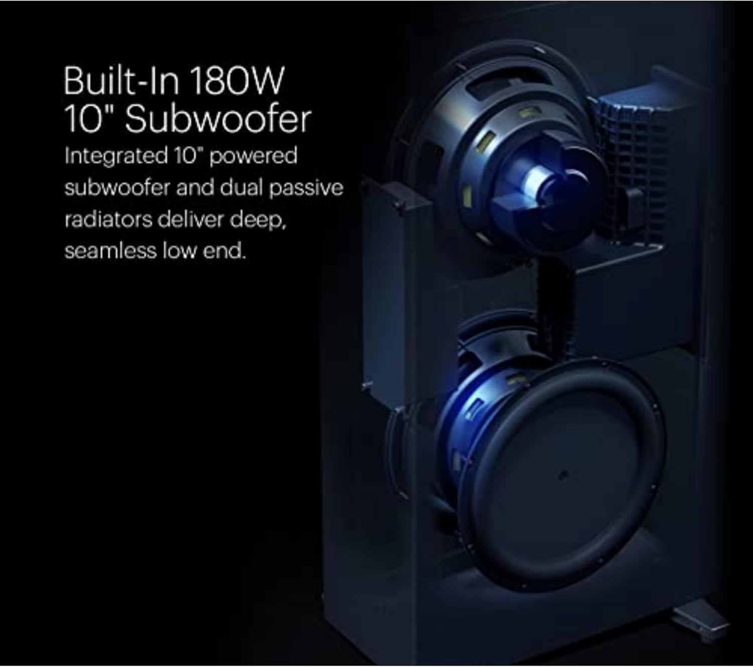 Level up your home theater audio with the Definitive Technology Dymension DM70 Large Tower Speaker - a bipolar floorstanding speaker with an integrated subwoofer that features dual bass radiators, four BDSS mid/bass woofers, and tweeters for unrivaled sound. DM70's bipolar arrays are adjusted to optimize for room placement and hold a rear-array attenuation switch for near-wall placement. The 3XR Architecture combines an integrated 10” subwoofer powered by a Class D 180W amplifier and two passive radiators in this speaker. Its four 5.25" mid/bass BDSS woofers for superior midrange detail and custom aluminum oxide tweeter provide a smooth extended response with crisp transients and exceptional definition. To get deep-bass performance, it has a Patented Intelligent Bass Control that blends subwoofer output with mids and highs. This speaker also has a Patented Linear Response Waveguide that extends off-axis dispersion for total sonic immersion. Be it an onscreen movie drama or hearing the sonic details while gaming, this tower speaker always performs to the best of its caliber. The consistent sound across Definitive Technology gives you the flexibility to mix and match Dymension, Dymension CI, and Mythos speakers, which can be voice-matched to design a complete home system. (Sold as Each)