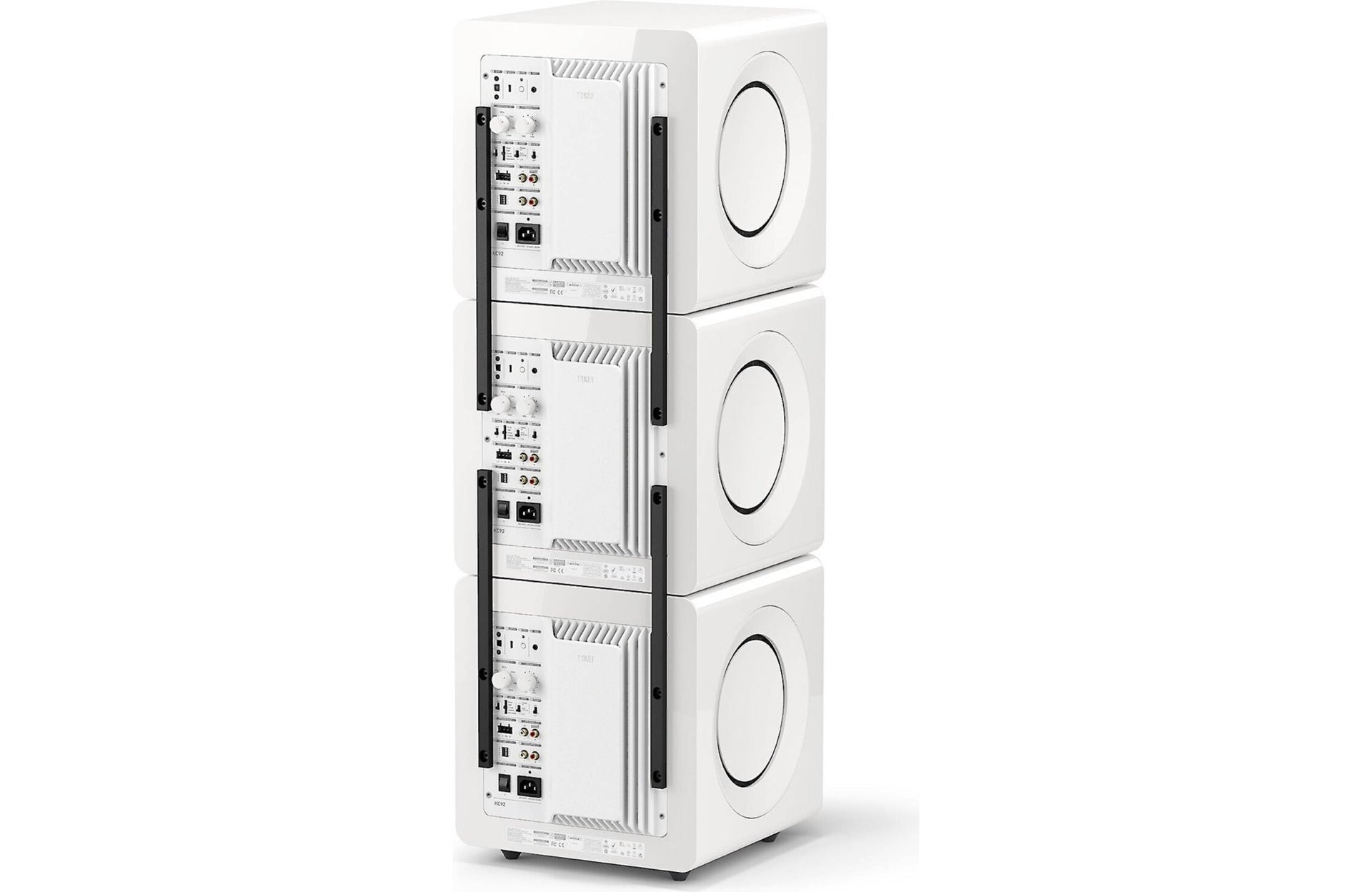The KSK92 subwoofer stacking kit is designed to effortlessly merge up to three KC92 subwoofers into a single, powerful unit. With easy installation via threaded inserts on the rear plate of the KC92, stacking subwoofers vertically is a breeze, and can help deliver even higher levels of output and performance, without sacrificing valuable floor space. Stacking KC92 subwoofers can increase the maximum output by up to 9.5dB – the difference in listening to a rock concert and hearing a jet plane take off from the runway. Alternatively, each subwoofer can be played at a lower level individually, providing better dynamics and headroom for a more accurate performance. Crafted from durable aluminum, the frames provide a sturdy foundation, while a soft material layer sits between each subwoofer, ensuring they remain scratch-free. By positioning the frames discreetly at the rear after stacking, the result is an excellent audio experience and a clean, seamless aesthetic.