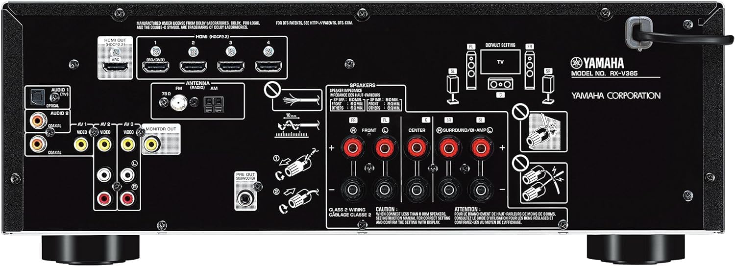 The YAMAHA RX-V385 5.1-Channel AV Receiver combines robust audio performance with versatile connectivity options, perfect for immersive home theater setups. It supports 4K Ultra HD pass-through with HDCP 2.2, ensuring compatibility with the latest video formats. With Bluetooth connectivity, it allows wireless streaming from compatible devices, enhancing convenience and flexibility. The included YPAO™ sound optimization adapts audio settings to your room's acoustics, delivering balanced sound tailored to your space. Paired with the NS-SW050BL 8" 100W Powered Subwoofer, this bundle offers deep, impactful bass that enriches your audio experience.