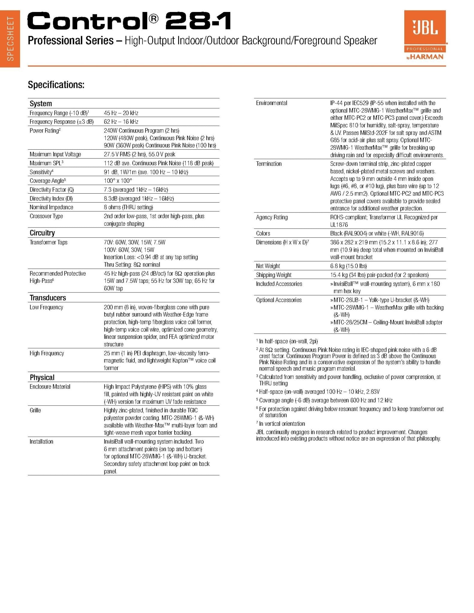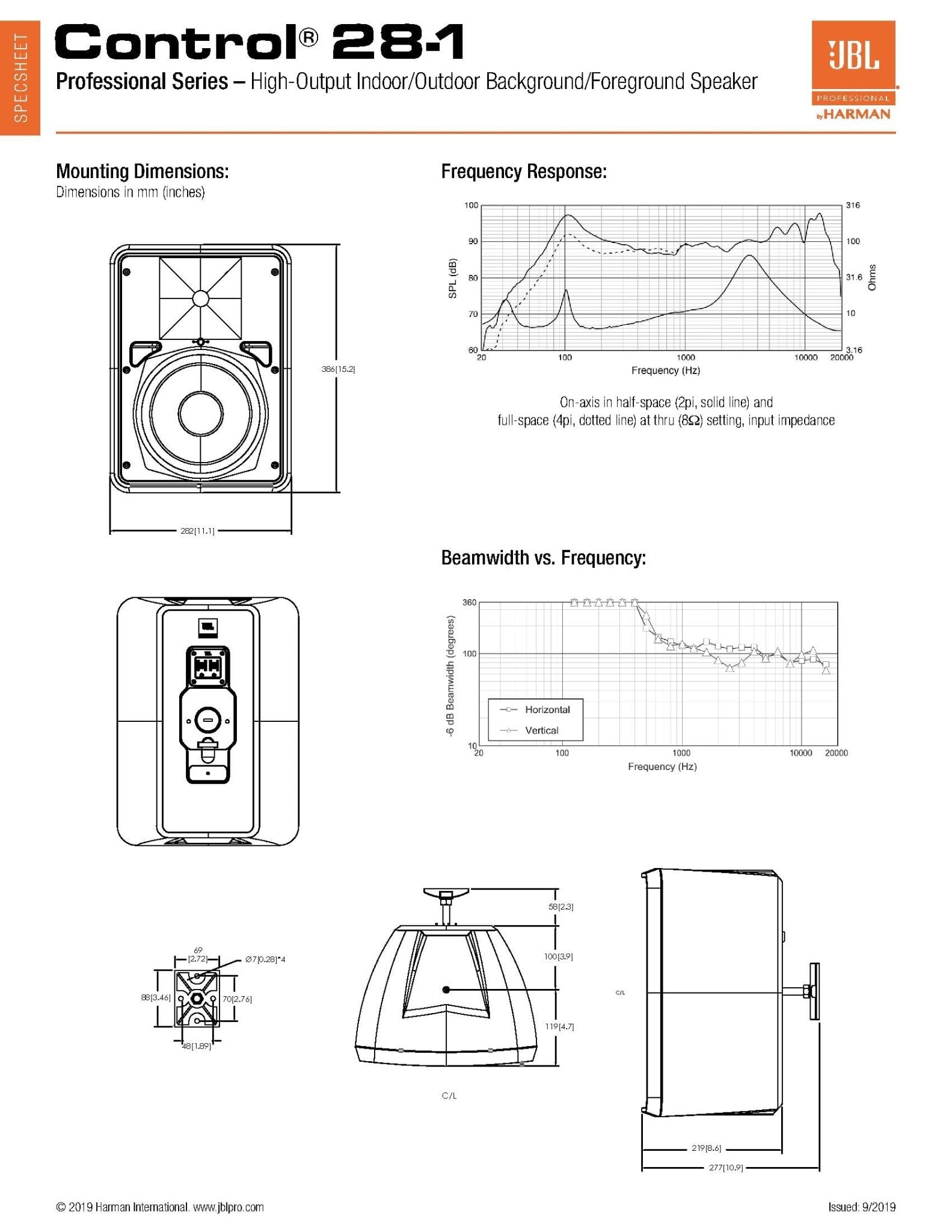 The Control® 28-1L is a two-way 8" speaker with rich sonic character, wide coverage, consistent coverage, versatile mounting, and a contemporary high-design look that fits into a wide range of decors, This makes Control 28-1L an excellent choice for a wide variety of applications, including retail stores, restaurants, health clubs, theme parks, educational facilities, hospitality, music cafes, leisure venues, and anywhere where a top quality high-output indoor/outdoor foreground/background music (and/or paging) speaker is required.