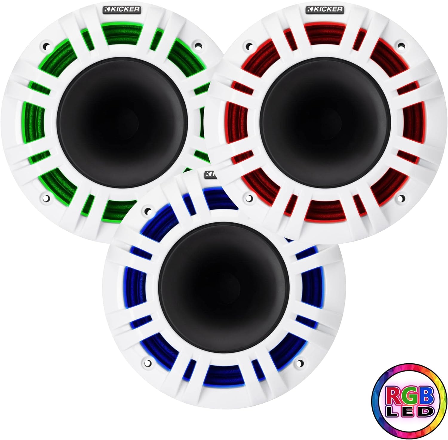 • Choice of Grille Color or LEDs - KMXL speakers come with both charcoal and white UV-treated grilles and incorporate RGB LED lighting. Add an LED controller like Kicker's KMLC for even more possibilites.