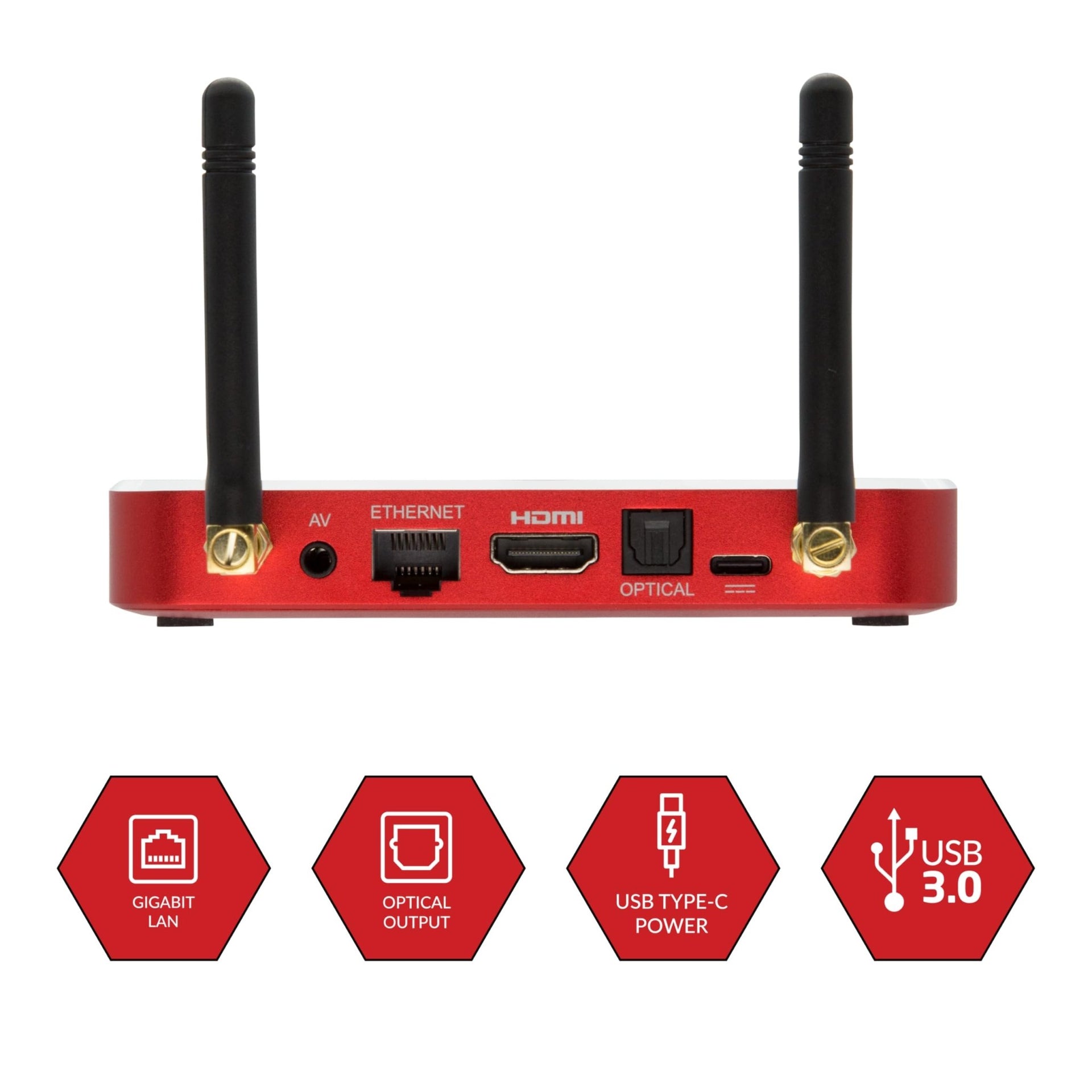 • Sleek & Stylish Design: The stunning scarlet red aluminum exterior not only enhances the aesthetics of your entertainment setup but also provides durability and heat dissipation for long-lasting use.