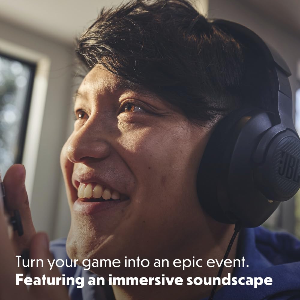 Made for long and immersive gaming sessions, the Quantum 100M2 Wired Gaming Headset from JBL features JBL's QuantumSOUND Signature, which is designed to deliver a realistic soundscape in your games. Each earcup is outfitted with a thick memory foam cushion wrapped in breathable fabric, along with a padded headband for maximum comfort. Ready for online play, the Quantum 100M2 comes with a detachable boom mic with a directional voice-focused pickup, to make your orders and chats with teammates easy to understand in the heat of battle.