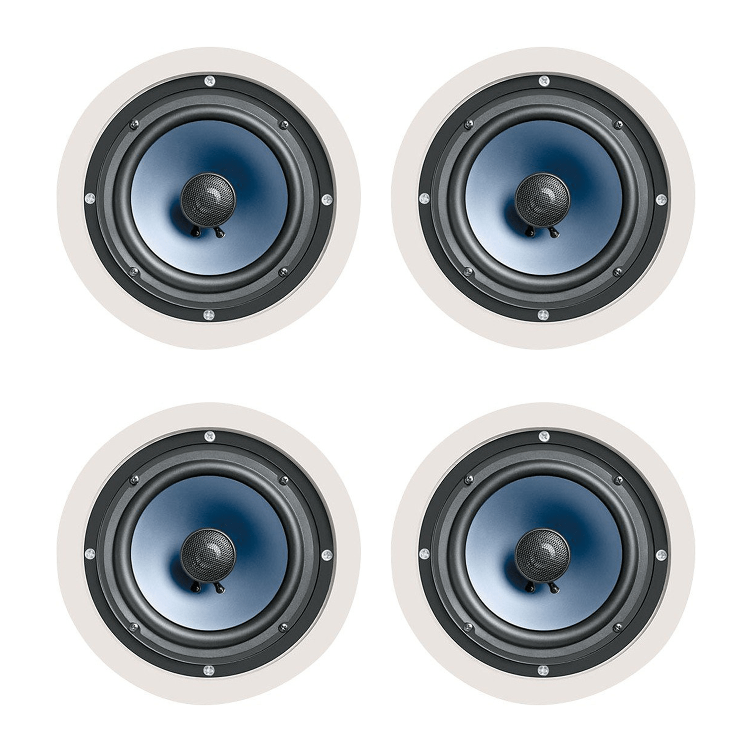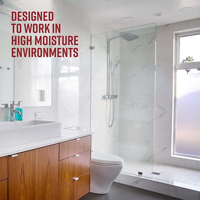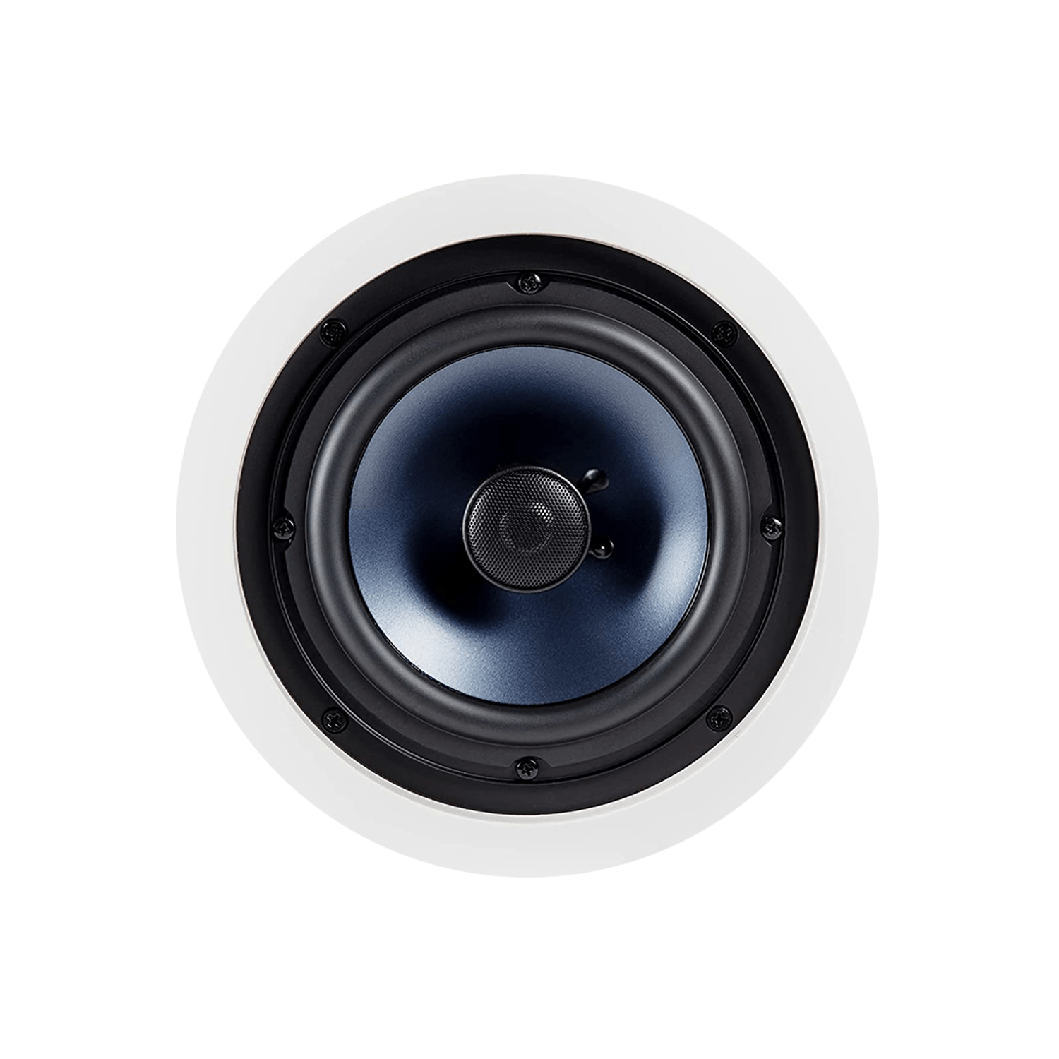The Polk Audio RC60i In-Wall/In-Ceiling speakers practically have the in-wall speaker race in the bag. They are effectively the benchmark. Their low cost, swivel tweeter design, easy to install, use in bathrooms or saunas, and large dispersion design make them the easy choice for in-wall/in-ceiling speakers. They mimic the look a recessed lighting and you can paint them to match your decor. They will practically disappear in your home.