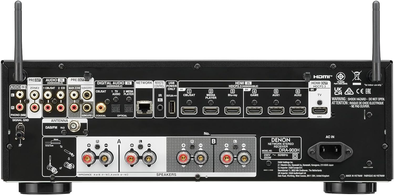 DYNAMIC STEREO AV RECEIVER - Embrace the power with the Denon DRA-900H Stereo Receiver, a 2.2-channel 8K AVR delivering 100W/Ch, that elevates your music and movies. Integrate with your TV and devices, and enjoy streaming in every room via 8K/HDCP 2.3