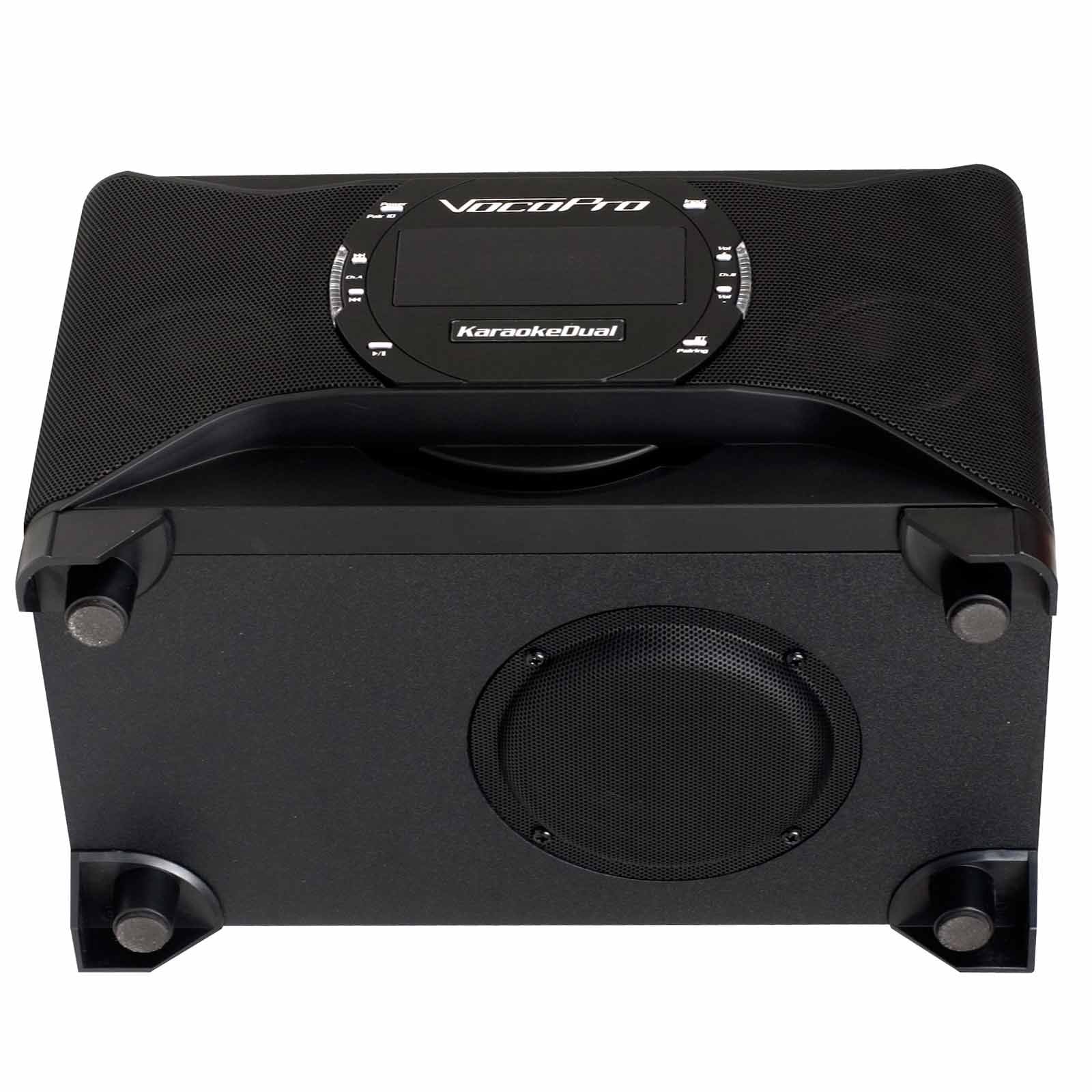 The KaraokeDual is a powerful 2.1 digital boom box with high-quality DSP Effects to make you sound your best! Get connected with Bluetooth and stream your karaoke audio wirelessly! Or connect the KaraokeDual with the available digital optical input to an internet connected Smart TV and access thousands of tracks through YouTube, or your favorite karaoke app like Karaoke Channel or Red Karaoke. The KaraokeDual comes packaged with two wireless vocal microphones. Each mic has the controls built right into the handheld for maximum convenience! Turn your living room into a karaoke studio for friends and family, and fill your room with great sounding music and vocals with the powerful 2.1 KaraokeDual!