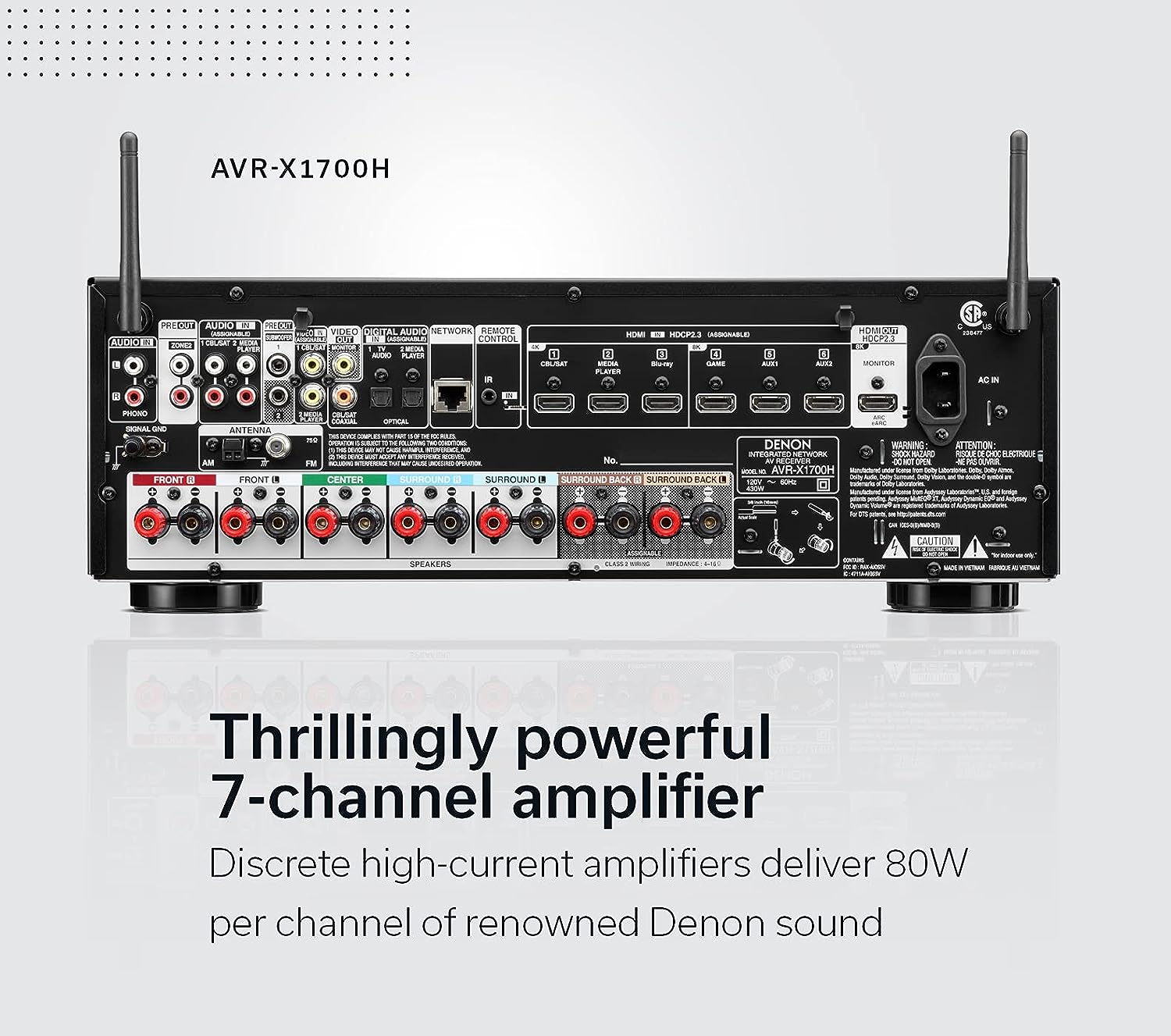 YOUR HOME AT YOUR FINGERTIPS - Denon's receiver AVR-X1700H features external control and IP control capabilities for seamless integration with Home Automation Systems and allows REMOTE MONITORING of connected devices