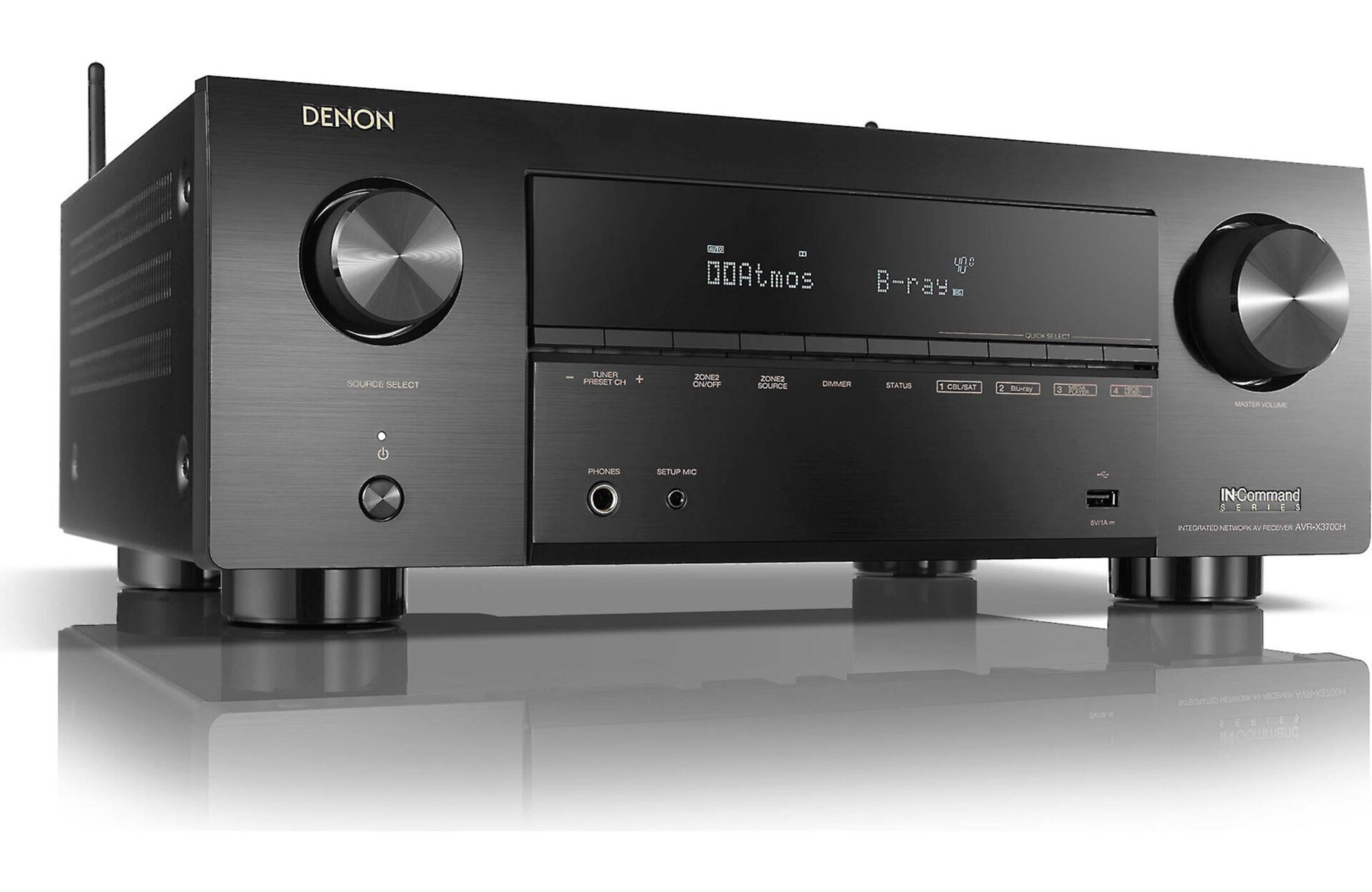- Dolby Atmos® processing for use with in-ceiling or "height" speakers for more enveloping home theater sound