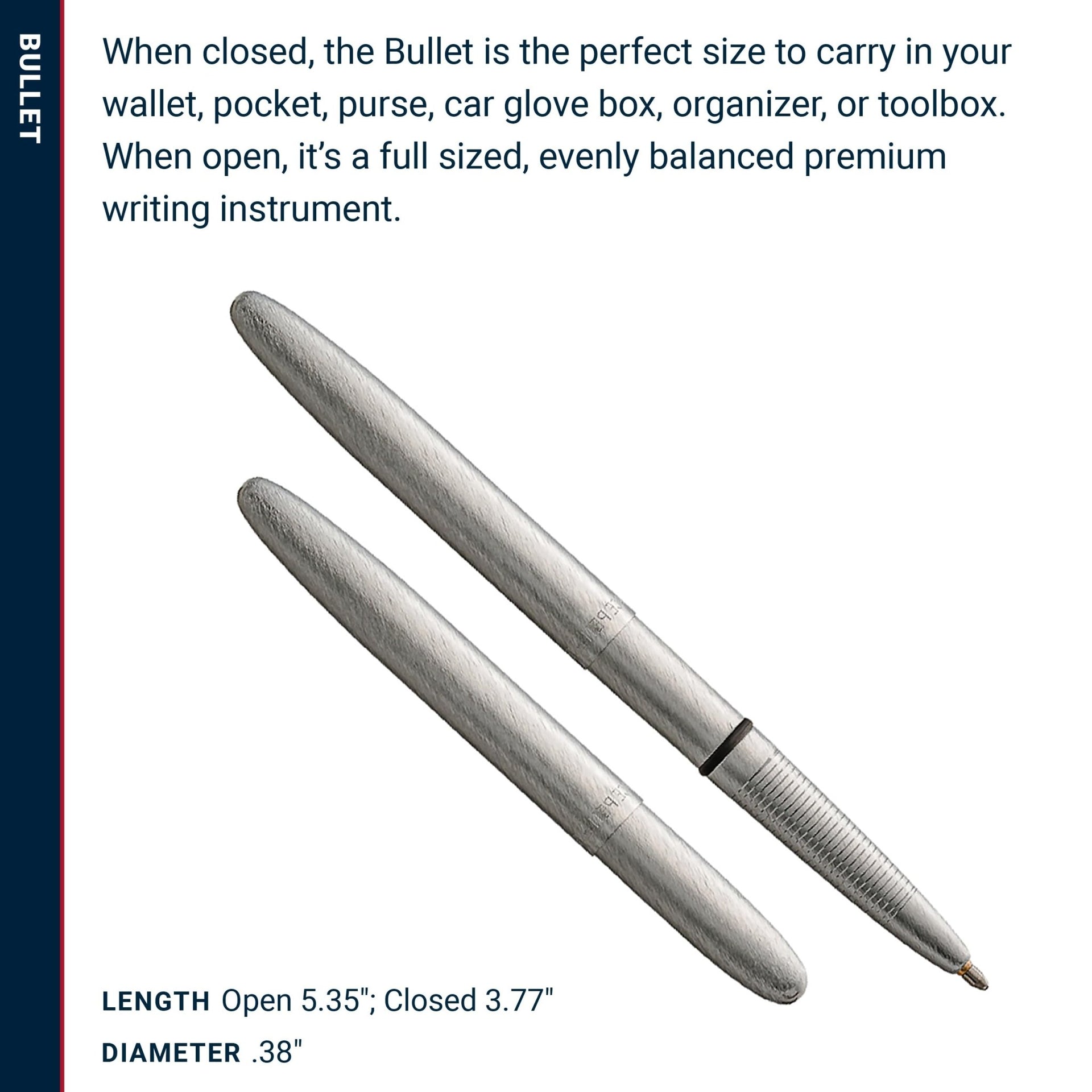 A Pen Designed to Last: The Brushed Chrome Bullet Pen is a timeless, classic ballpoint pen and compact enough to carry in your wallet, pocket, purse, car glove box, organizer, or toolbox
