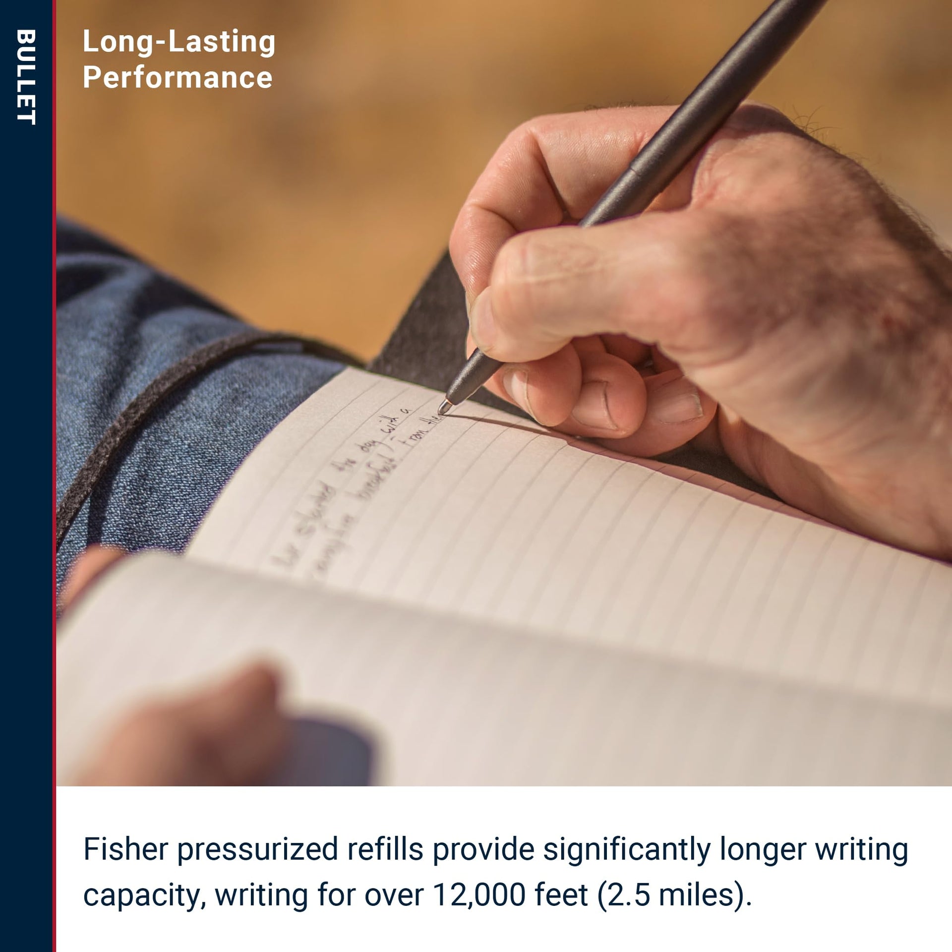 Write in Extreme Temperatures: All Fisher Space Pens write in extreme temperatures ranging from -30°F to 250°F (-34° to +121°C), underwater, in space or any other harsh environment