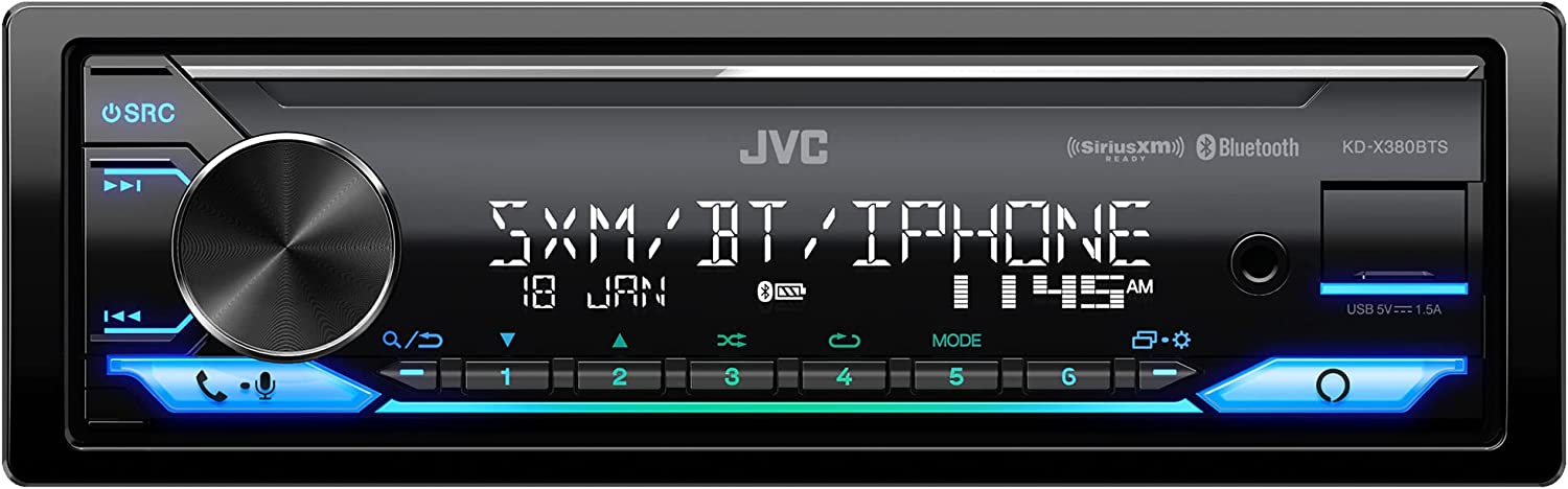 JVC's KD-X380BTS digital media receiver is the ideal 2" tall solution for a driver like me. Built-in Bluetooth connectivity for hands-free calling, a front USB port, and an aux input make playing music from your phone quick and satisfying. And if streaming isn't your thing, you can add a SiriusXM satellite radio tuner (sold separately) for easy entertainment. And the receiver's high-contrast LCD display fares well, even in bright sunlight. No matter what kind of phone you're using, Bluetooth pairing is automatic every time you hop in the car. You can also pair two phones at once — if you share a vehicle, getting connected is less of a hassle than adjusting the rear-view or getting the driver seat the way you like it. And when it comes to streaming audio, JVC's Streaming DJ feature lets you pair five phones so everybody can chime in with their favorite song on the road.
