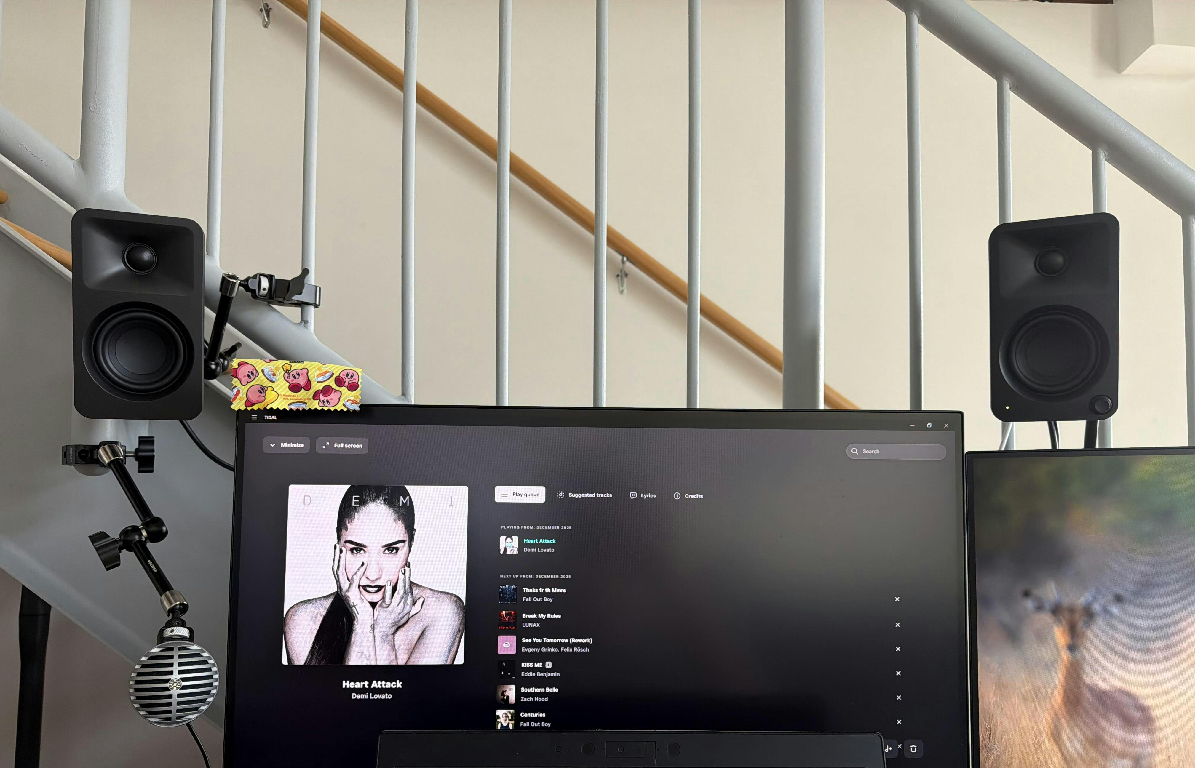 The Kanto ORA provides reference-grade sound with 100W of power in a shockingly small package while offering deep bass and versatile inputs for various devices. They seamlessly integrate with a subwoofer and are compact, making them ideal for any workspace, and their retro-friendly design ensures compatibility with different displays.