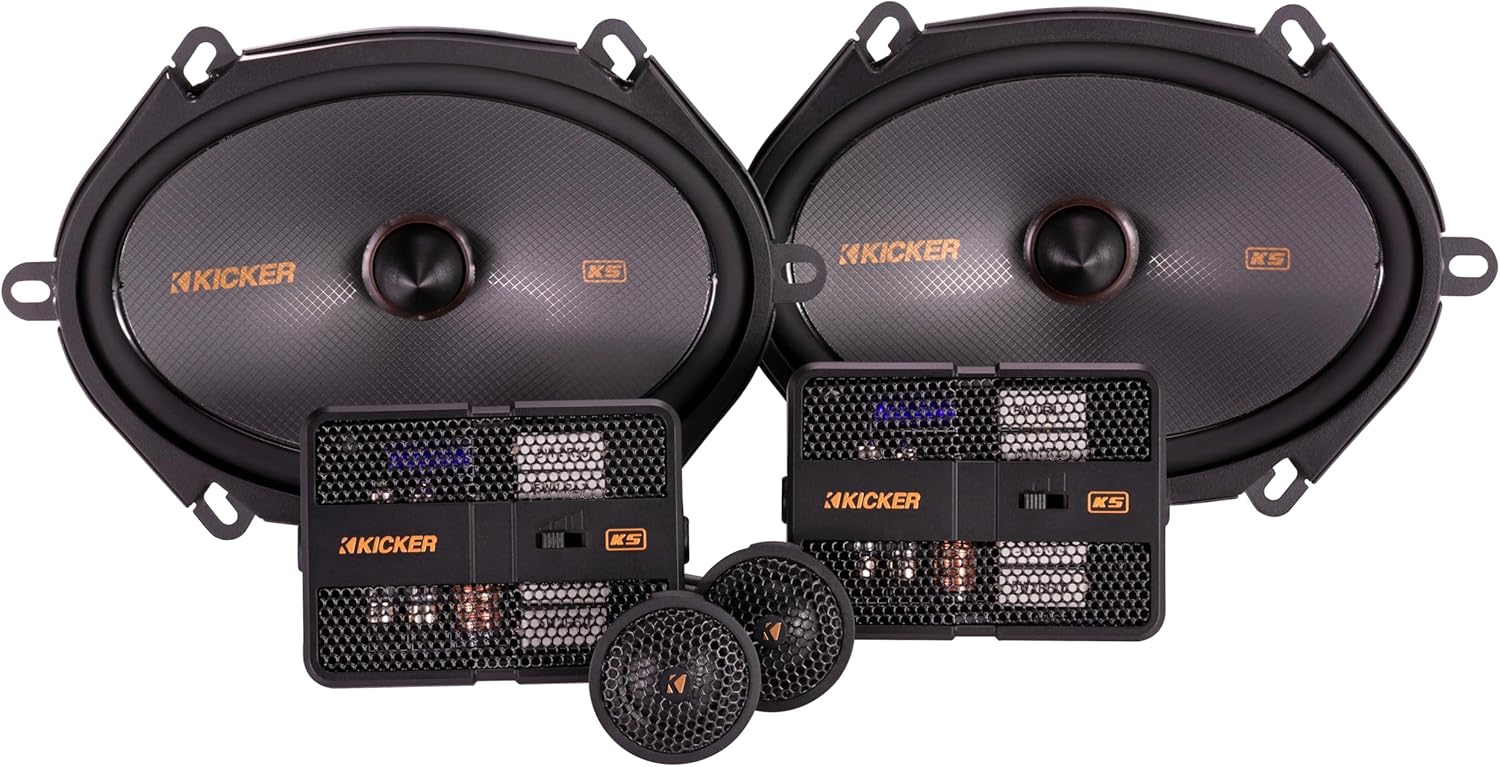 KICKER KS-Series Speakers let you play at concert-like volume, yet maintain the smoothness and subtlety to please even the most selective ear. KS-Series Component Systems are stunning, accurate upgrades with extraordinary mounting flexibility. Powerful magnets and EVC technology give you deep, smooth bass, with flexible mounting options. An easily mountable crossover network is included with every KS system. Experience your music as a component system with separate tweeters, or as a high-end coaxial system. In addition to the coaxial options, you can surface mount the tweeter, angle it in a custom direction, or use the articulating tweeter pod to get perfect imaging and soundstage.