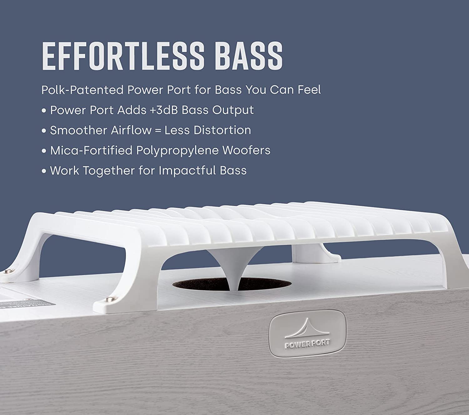 NOT ONLY HEAR, BUT FEEL THE HEART-THUMPING BASS - Polk's Patented Power Port Technology delivers 3dB louder bass output than conventional ported speakers, minimizing turbulence & distortion so you do not miss any detail in your movies, music, and games
