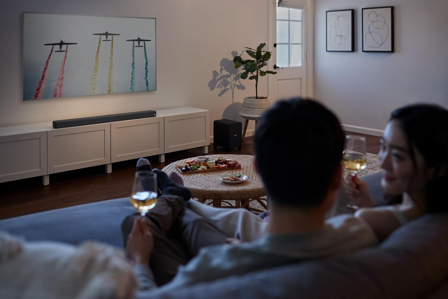 • 1-CABLE SETUP, WORKS WITH ANY TV INCLUDING THE LATEST 8K ULTRA-HD TVs - Get this system up and running in less than 5 minutes-all you have to do is unbox, connect and you are ready to listen. A great addition to your home theater!