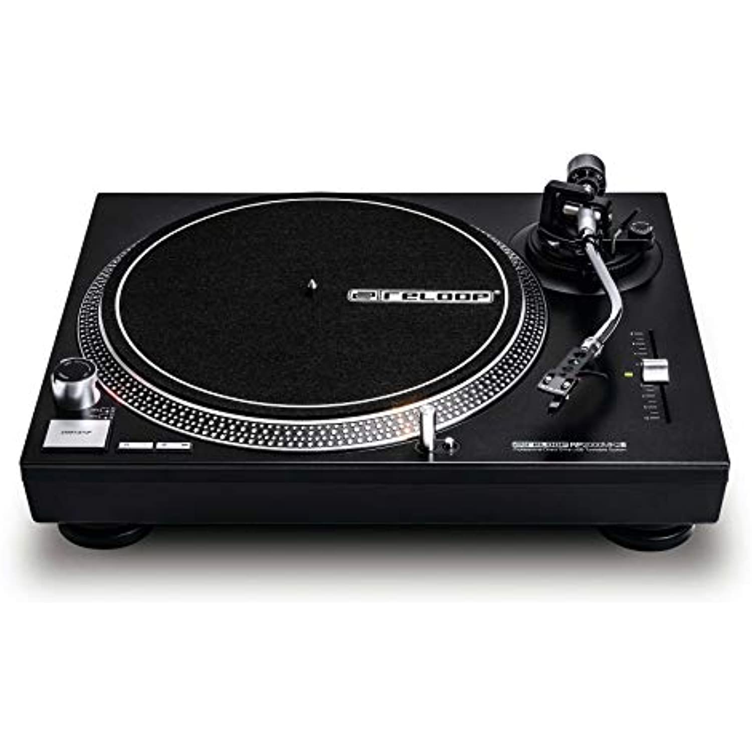 The RP-2000 USB Mk2 is a versatile turntable for prospective DJs. In addition to the built-in phono pre-amp the turntable offers a USB Audio output for Digitizing your vinyl. The Mk2 version features several improvements, including a newly developed top panel construction and improved metallic buttons with enhanced feel. Compared to belt-driven turntables, the RP-2000 USB Mk2 transfers its motor force directly to the drive hub – This way a higher torque generates power faster on the precision-engineered platter with minimal wow and flutter. The adjustable pitch control with a range of +/- 8 % is suitable for the finest pitch adjustments. The RP-2000 USB Mk2 features a statically balanced S-shaped tone arm with hydraulic lift and anti-skating mechanism. Thanks to the universal SME connection, a large number of pick-up cartridges can be connected. Recording your records to digital format is easy via the high resolution USB connection. Set up is fast, as no driver is required when connecting to your recording software. There's no need for grounding the RP-2000 USB Mk2 and the built-in phono pre-amp allows for line level output. The new deep-black metallic top panel is equipped with metallic buttons for start/stop and speed settings. The improved touch upon hit offers a clear haptic feedback. With the push of a button The aluminum target light can be extended, so that the needle position can be seen in dark surroundings. The sturdy construction with optimized damping features and shock-absorbing feet improve isolation from unwanted vibrations. The RP-2000 USB Mk2 comes with the high-quality OM black pick-up, handmade by Ortofon in Denmark, pre-fitted to a head shell ready for immediate playback.