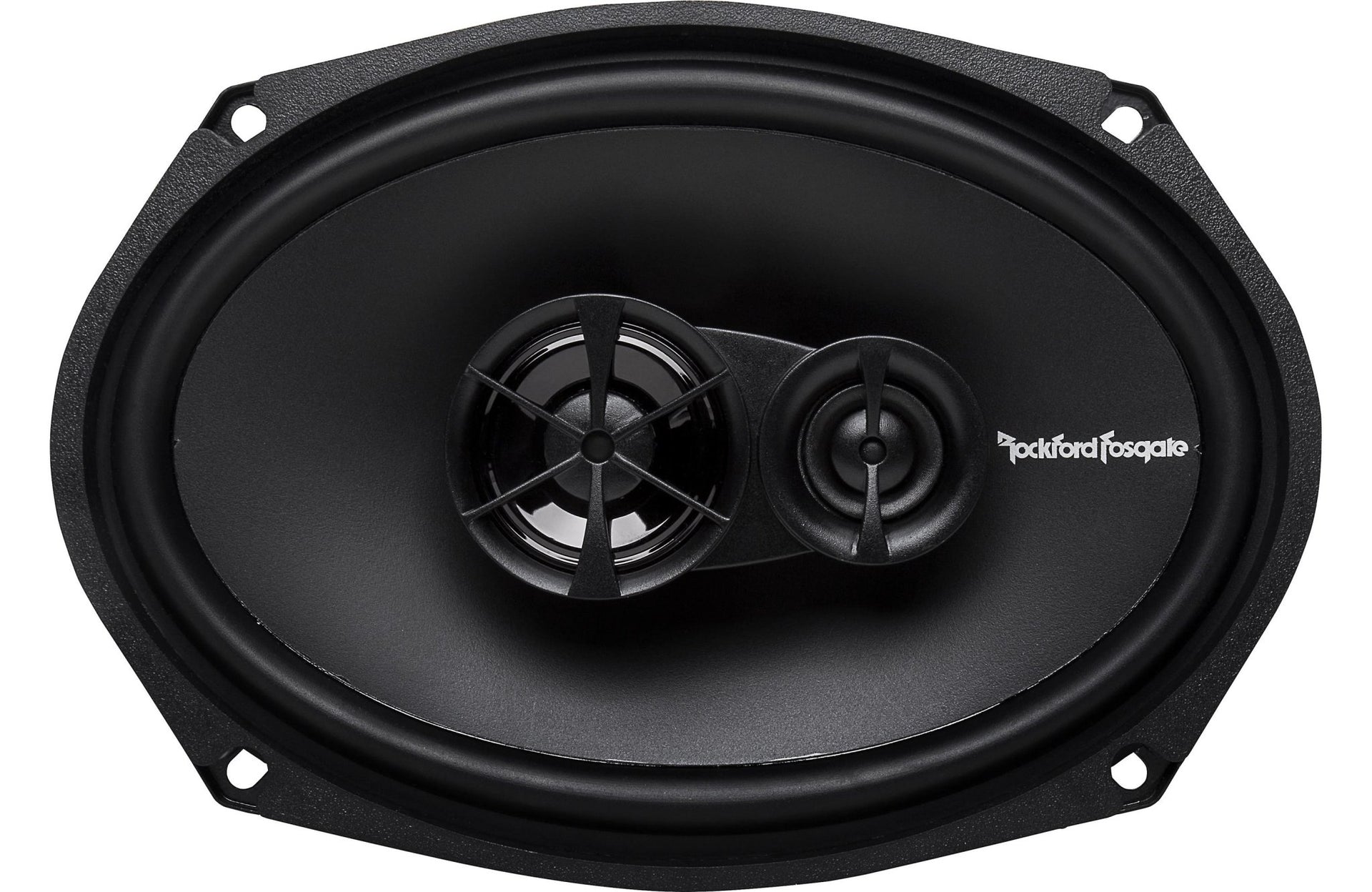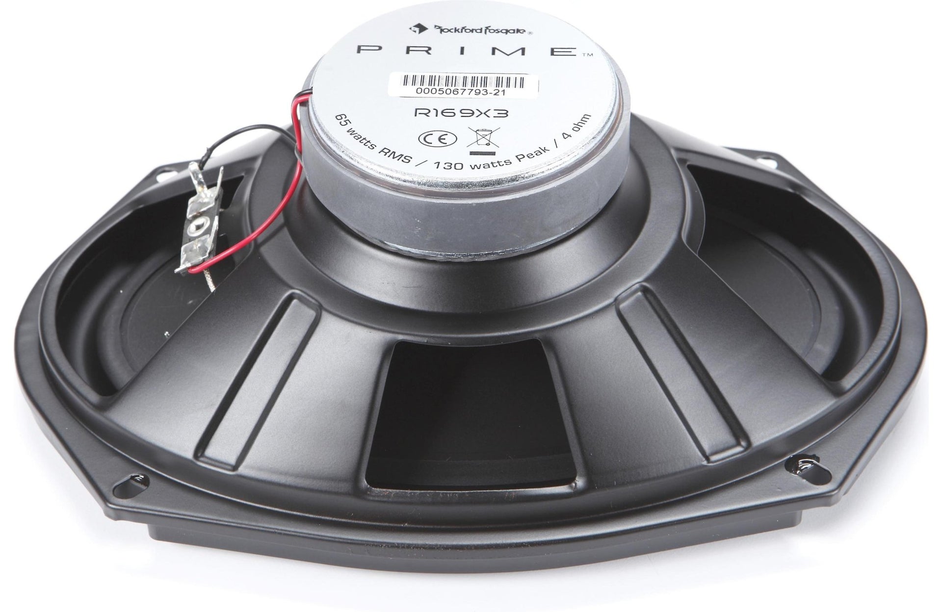 The R169X3 is a 6”x9” 3-way full-range speaker rated at 65 watts RMS for a new generation of factory replacement speakers. Kit includes integrated high-pass crossovers and mounting hardware. The speakers offer Rockford Fosgate sound quality at a fantastic value. Perfect for replacing factory speakers, they feature polypropylene cones and a silk dome pole mounted Piezo tweeter and midrange. Includes grilles so they look as good as they sound.
