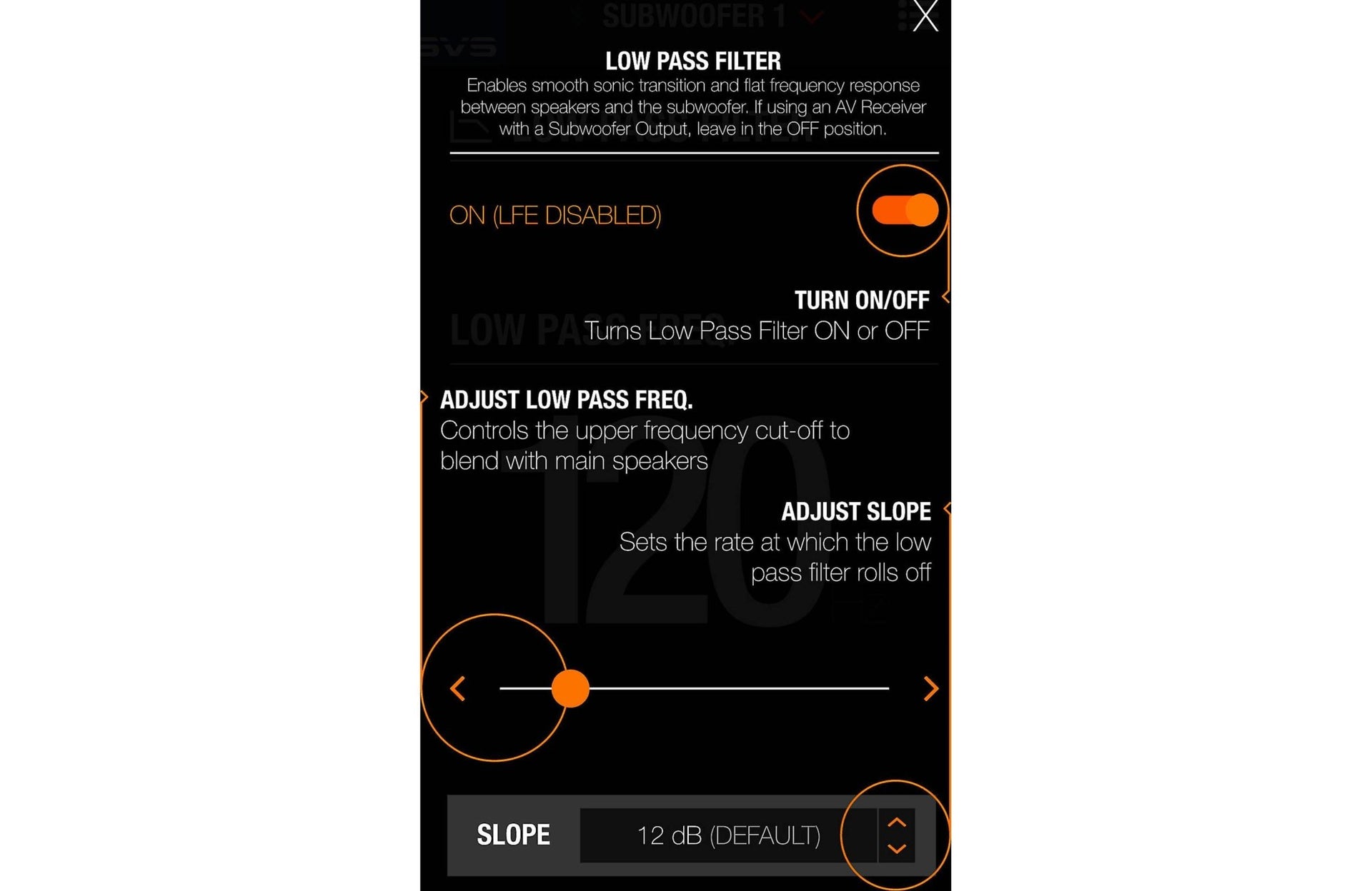 Compatible with both Apple iOS and Android devices, the SVS Subwoofer Smartphone App simplifies your subwoofer control via Bluetooth. With easy access to volume, room gain, and various other settings via your smartphone, switching settings to match your entertainment is a cinch. The ability to preset three different settings allows for multiple custom listening experiences.