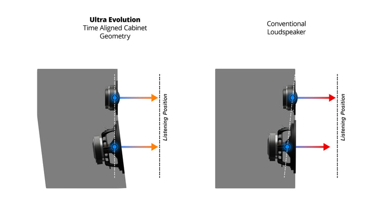 Curved front baffle aligns the acoustic center of the tweeter and woofer on a vertical plane ensuring sound from each driver reaches your ears at the exact same instant. Maximizes phase coherence for more convincing and immersive soundstage with pinpoint accuracy and imaging.