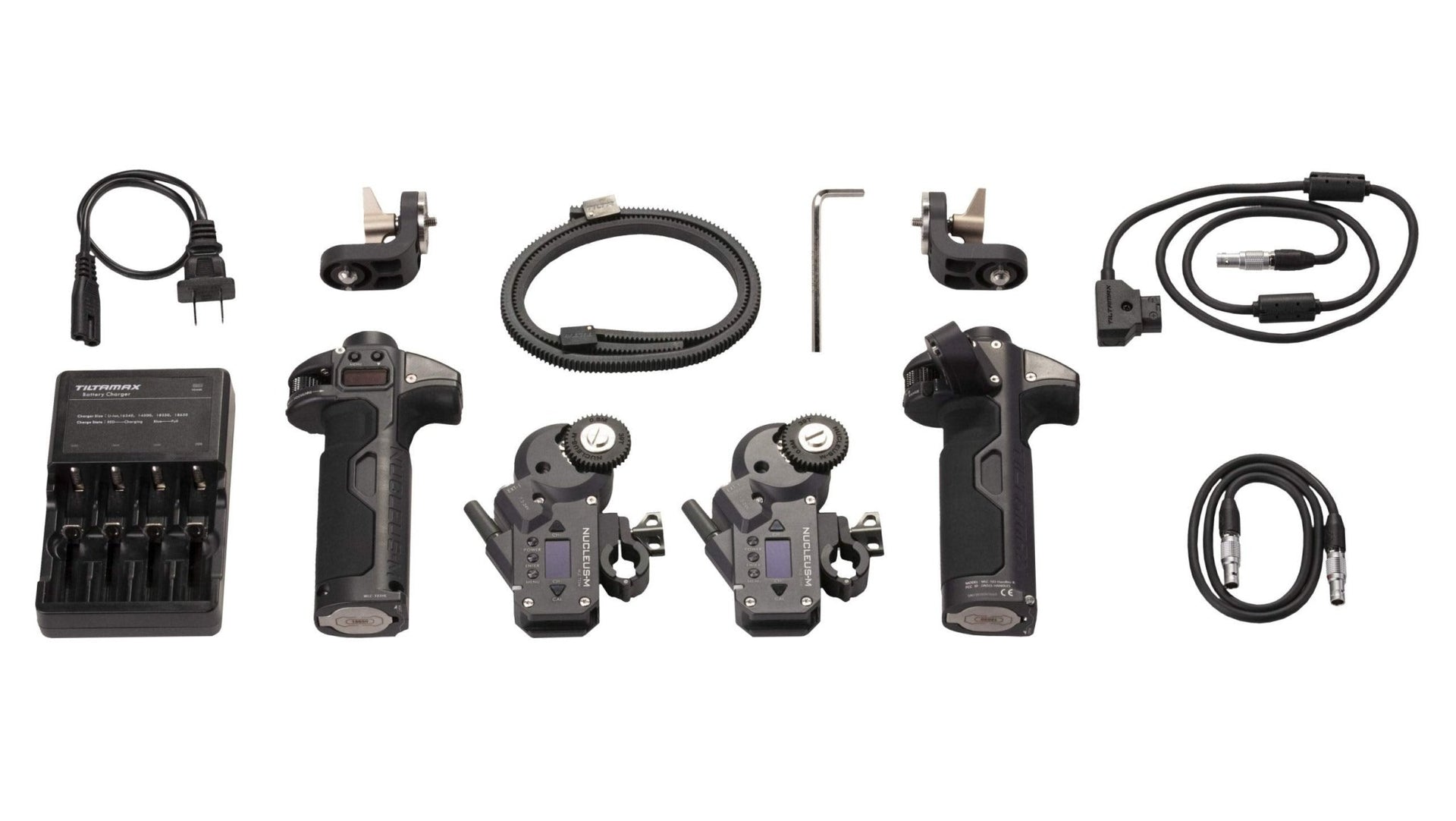 The Tilta Nucleus-M Wireless Lens Control System Partial Kit V enables a camera operator to hand-hold their camera and pull focus and iris wirelessly. The kit includes left and right handgrip controllers, ARRI rosette adapters, two Nucleus-M motors, two removable lens belts (DSLR Lens Follow Focus Adapters), two motor power cables, and a battery charger. If you are using a lens that does not have standard cine-style gears, then use the included lens belts to add gears to your lens.