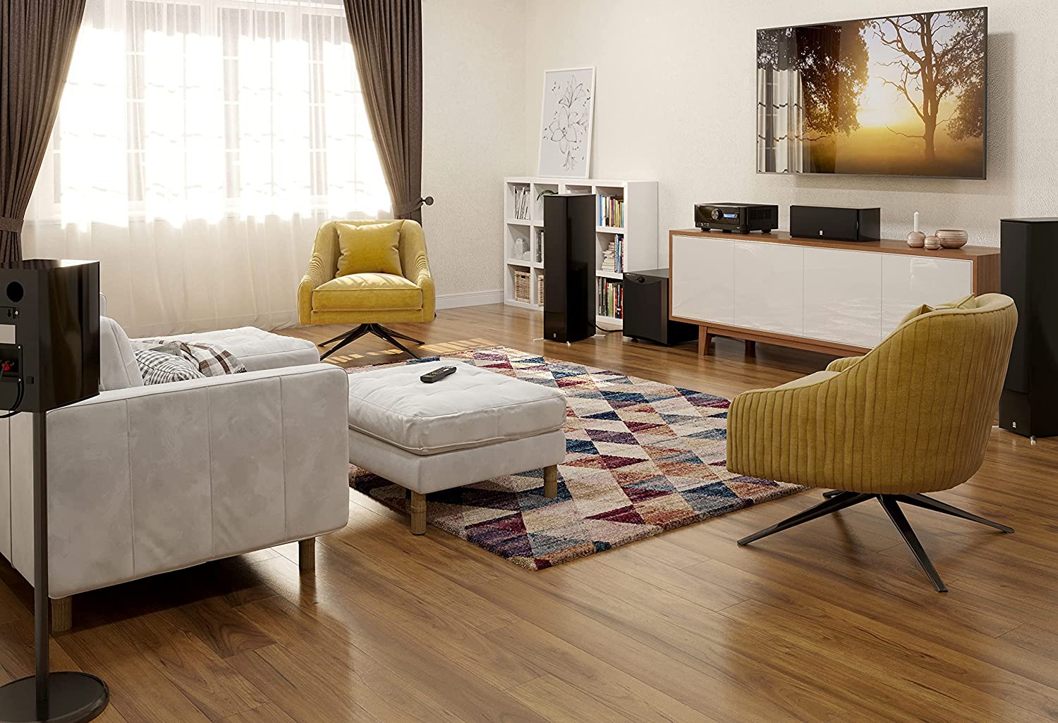 Enjoy a 5.1-channel surround system and two additional overhead speakers or two Dolby Atmos elevation speakers for dramatic overhead effects and more immersive audio. For users without in-ceiling or upward-firing speakers, Dolby Atmos Height Virtualization technology can simulate the Atmos experience. Configure up to five speakers to replicate the effect of two in-ceiling speakers, or use all seven channels to simulate the effects of four overhead speakers.